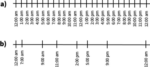 A raíz de su proyección como herramienta científica, la predominante estrategia icónica en la visualización ha desencadenado un creciente interés por la precisión en la lectura. Por ejemplo, el influyente estudio de Cleveland y McGill (1984) estableció los parámetros de una serie de investigaciones que intentan definir principios generales acerca de cómo deben construirse gráficos para que las personas que las lean puedan, primero, extraer la mayor cantidad de información relevante y, segundo, retener esa información en la memoria de la manera más eficiente. De forma similar, el estadístico Edward Tufte (1983) se convirtió en un influyente proponente de una serie de principios que promueven una lectura determinista y estricta de la visualización, libre de elementos irrelevantes y de codificaciones innecesarias. El estilo tuftiano ha definido una estrategia objetivista que elimina las minucias semánticas de la representación gráfica. No obstante, también existen propuestas que tratan de aliviar las ausencias presentes en las formas tradicionales de visualizar datos icónicamente. Por ejemplo, Drucker (2011) propone la creación de sistemas de coordenadas variables, que no sigan series geométricas regulares sino percepciones subjetivas con respecto al paso del tiempo o a la distribución del espacio (figura 7). Similarmente, el trabajo de las diseñadoras Giorgia Lupi y Stefanie Posavec (2018) contrasta con los gráficos mínimos del estilo tuftiano. Las obras de Lupi y Posavec (2018) siguen las ideas principales de la visualización icónica –la recolección de datos y la transformación en formas visuales por medio de funciones– pero de una manera en la que siempre es evidente que el proceso requiere de interpretación, tanto por parte de quien produce la gráfica como de quien la lee. Tal efecto se logra a partir de subvertir las convenciones típicas que se han considerado hasta ahora como buenas prácticas en la visualización –la eliminación del factor humano, podría decirse–: usar reglas no convencionales, aparentemente arbitrarias, pero que dan cuenta de que la creación de la interfaz de la visualización es también un proceso de conocimiento y de expresión. La figura 8 muestra un ejemplo basado en un ejercicio propuesto por Lupi y Posavec, la visualización de la percepción subjetiva de la intensidad y la temática de una canción a través del tiempo. El ejemplo está basado en la canción De donde vengo yo del grupo musical ChocQuibTown4. Gracias a la gráfica es posible notar cierta regularidad en la intensidad musical, que aumenta hacia el final de la canción. También se hace evidente una estructura temática que gira alrededor de las dicotomías culturales que el grupo musical señala con respecto a la región Pacífica en Colombia.