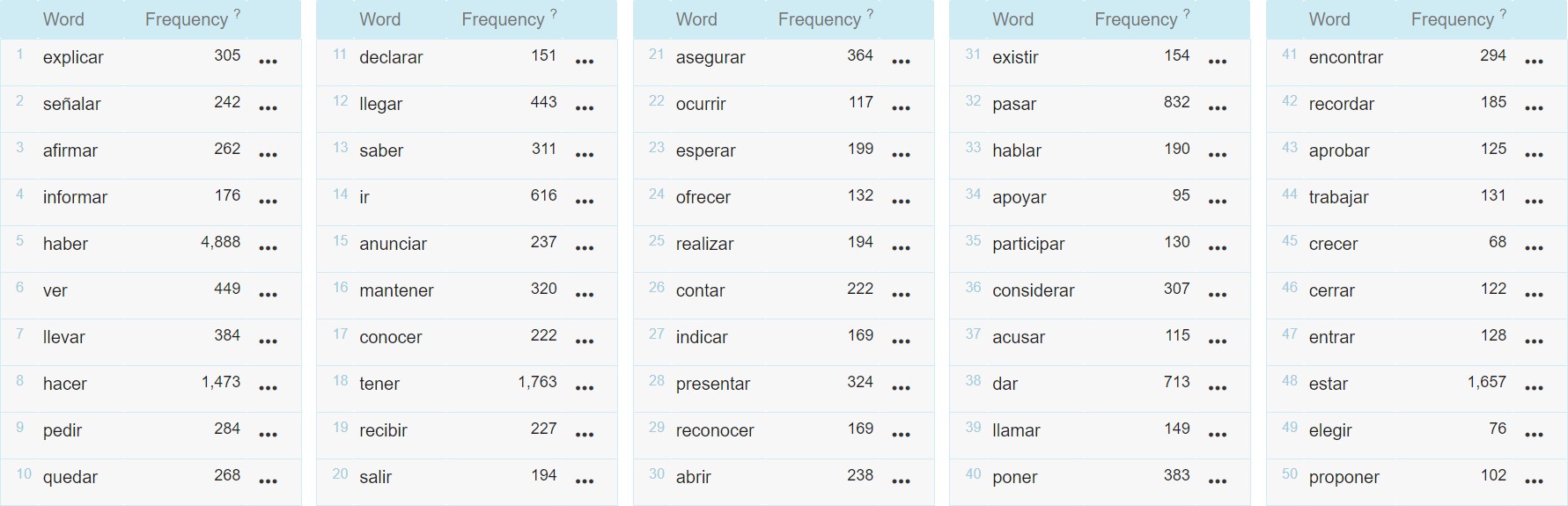 Para generalizar esta categoría que caracterizamos en la fase anterior, hemos recurrido en primer lugar a la herramienta Tesauro de Sketch Engine, que permite buscar términos en función de su lema, clasifica el resto de lemas del corpus en función de su similitud semántica con nuestra búsqueda en cuestión, y muestra, además, la frecuencia absoluta de éstos. Hemos podido constatar la calidad de la salida para un lema prototípico de los verbos habla, decir, y un lema prototípico de los verbos de experiencia psicológica, creer. Hemos escogido estos lemas como ejemplos para este trabajo por considerar que presentan una especificidad semántica mínima con respecto a las categorías de las que los consideramos representantes prototípicos.