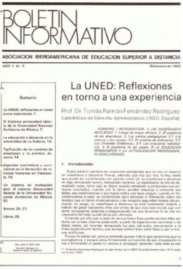 • La relevancia de la Asociación Iberoamericana de Educación Superior a Distancia (AIESAD) como organización pionera en la divulgación de la educación a distancia en toda su área de influencia, con el inicio en 1982 de su primera publicación periódica, el Boletín Informativo de la Asociación Iberoamericana de Educación Superior a Distancia.
