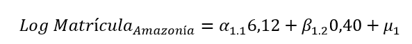 En el modelo vacío, en la parte fija presenta una media país de matrícula de 7,54 y en la parte aleatoria de 0,87. El 95 % de la matrícula en los cuatro años de análisis –independientemente de la región y la provincia– está muy cerca o en torno a la media país. Este modelo inicial tuvo el sentido de centrar la forma en la que está dispuesta la información; no obstante, fue necesario avanzar en función de los anidamientos planteados.